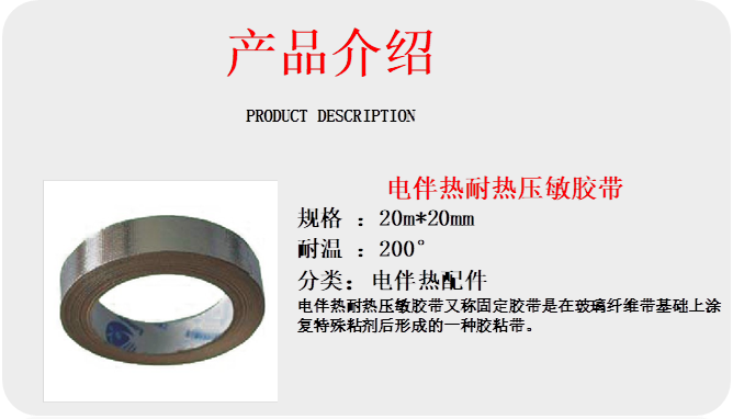 - 玻璃纖維膠帶:高溫場(chǎng)景專用固定,耐溫≥200℃,適配高溫型伴熱帶。