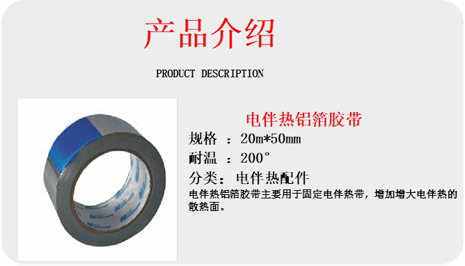 - 鋁箔膠帶:增強(qiáng)伴熱帶與管道熱傳導(dǎo),同時(shí)輔助固定,寬度常用25/50mm,耐溫≥100℃。